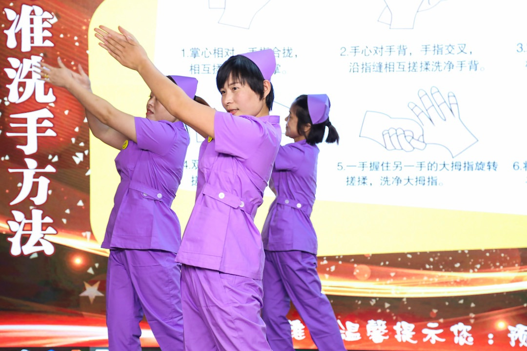 維佳家政的阿姨們在活動現(xiàn)場表演洗手舞